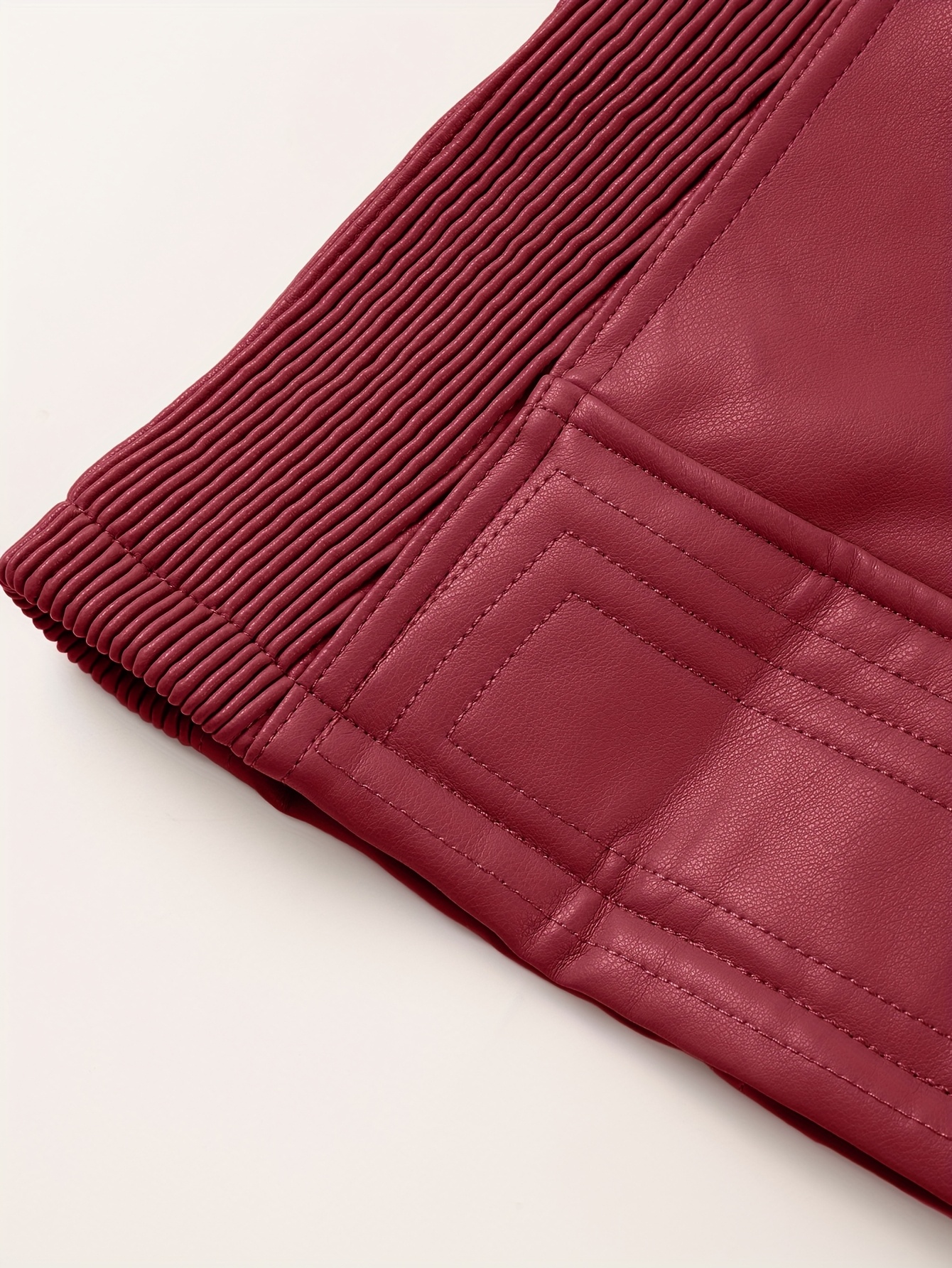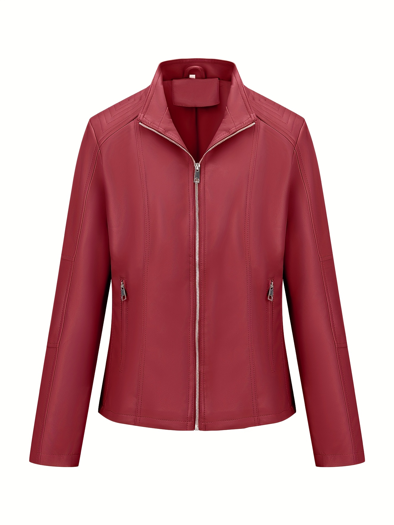 [Brown Biker Jacket] Brown Faux Leather Plus Size Women's Casual Biker Jacket | Short Motorcycle Jacket with Zipper Closure, Turn-Collar & Long Sleeves for Spring/Fall, Versatile Outerwear, Sleek Design, Durable Fabric