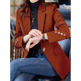 Elegant Pink Blazer with Button Details - Long Sleeve, Single-Breasted, Polyester, Perfect for Office or Casual Wear, All-Season Suit Jacket, Casual Wear Blazer | Elegant Blazer | Polyester Blazer