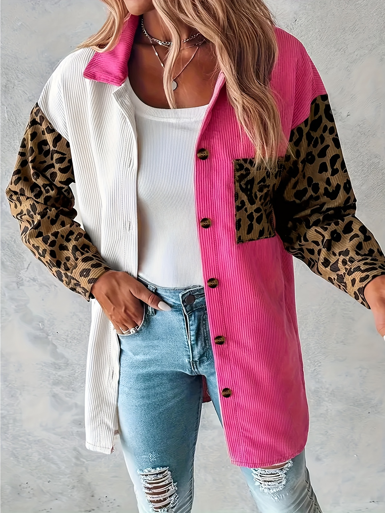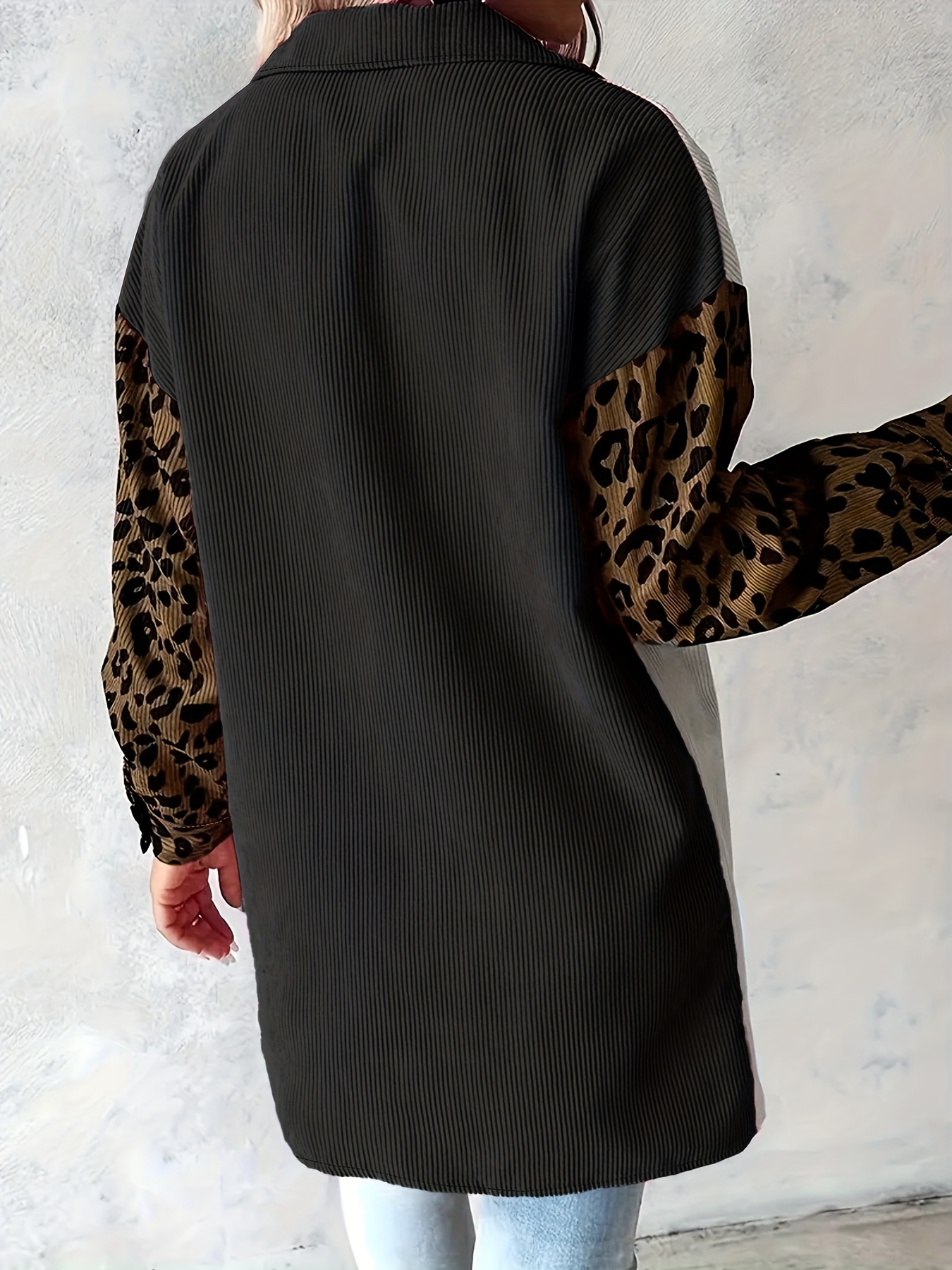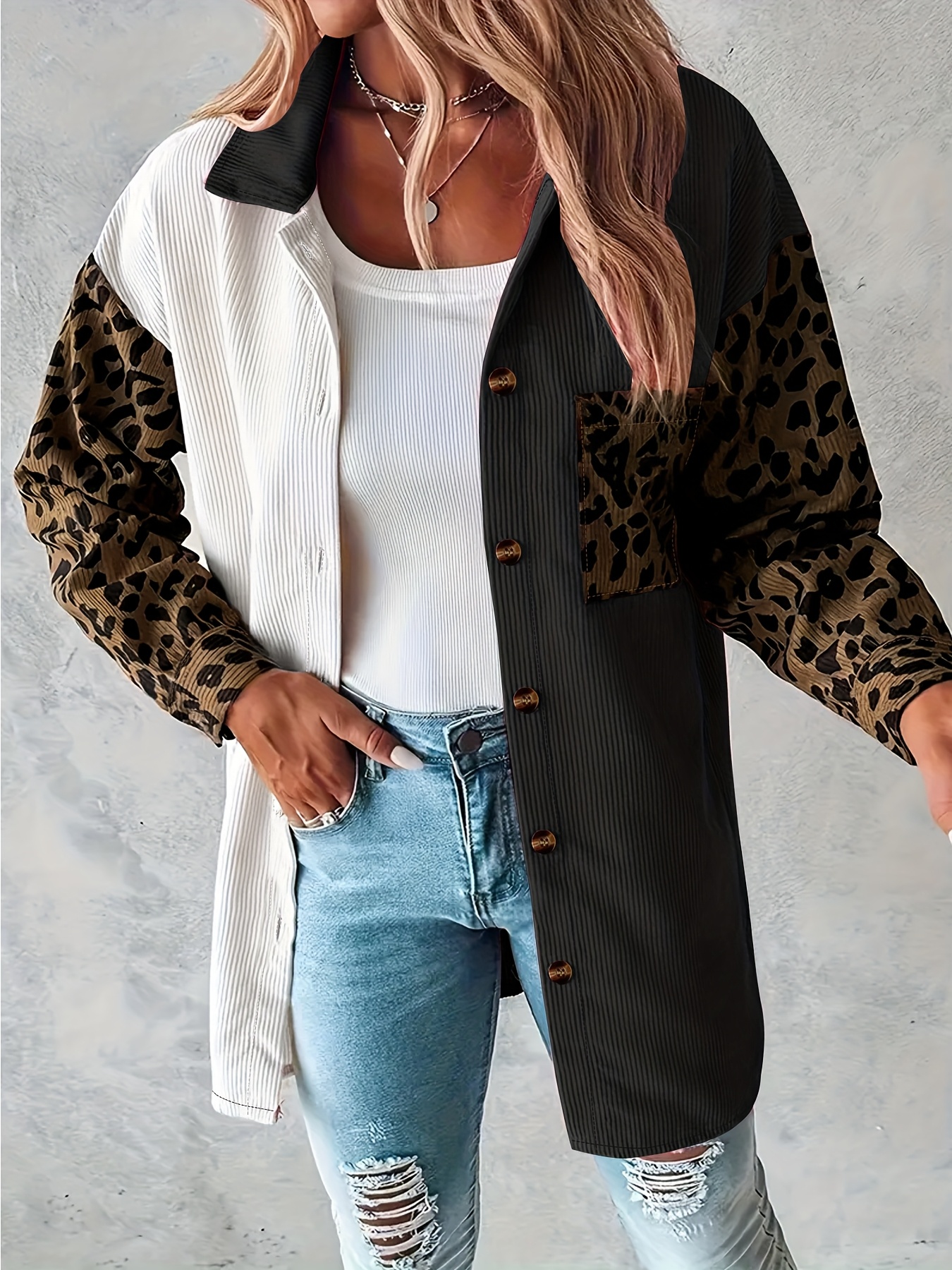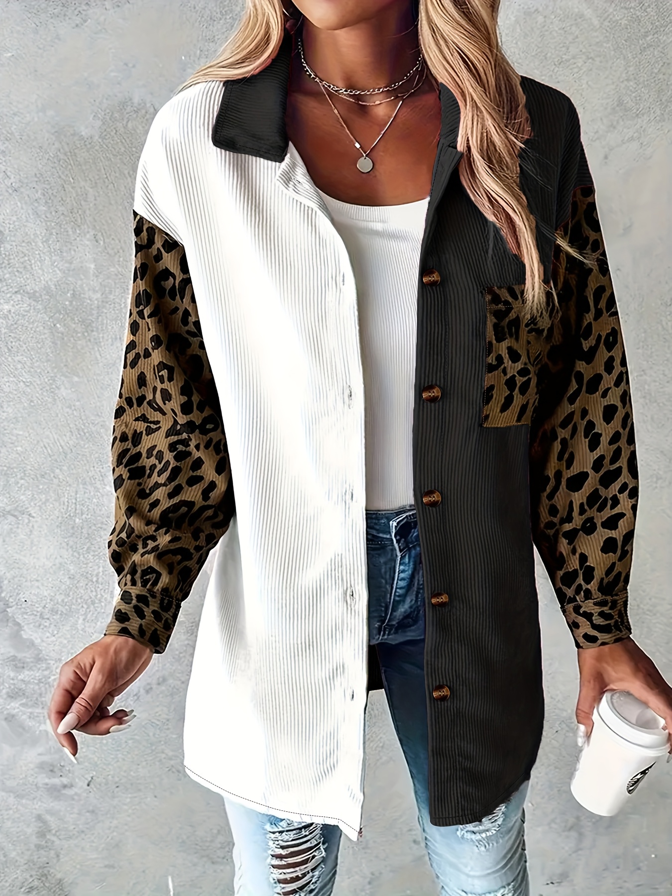 Plus Size, Plus Size Women's Oversized Coat - White & Mustard-Yellow Lapel Collar Jacket with Leopard Print Sleeves, Lapel Button-Front Blazer, Structured All-Season Outerwear (Machine Washable) for Casual & Professional Wear