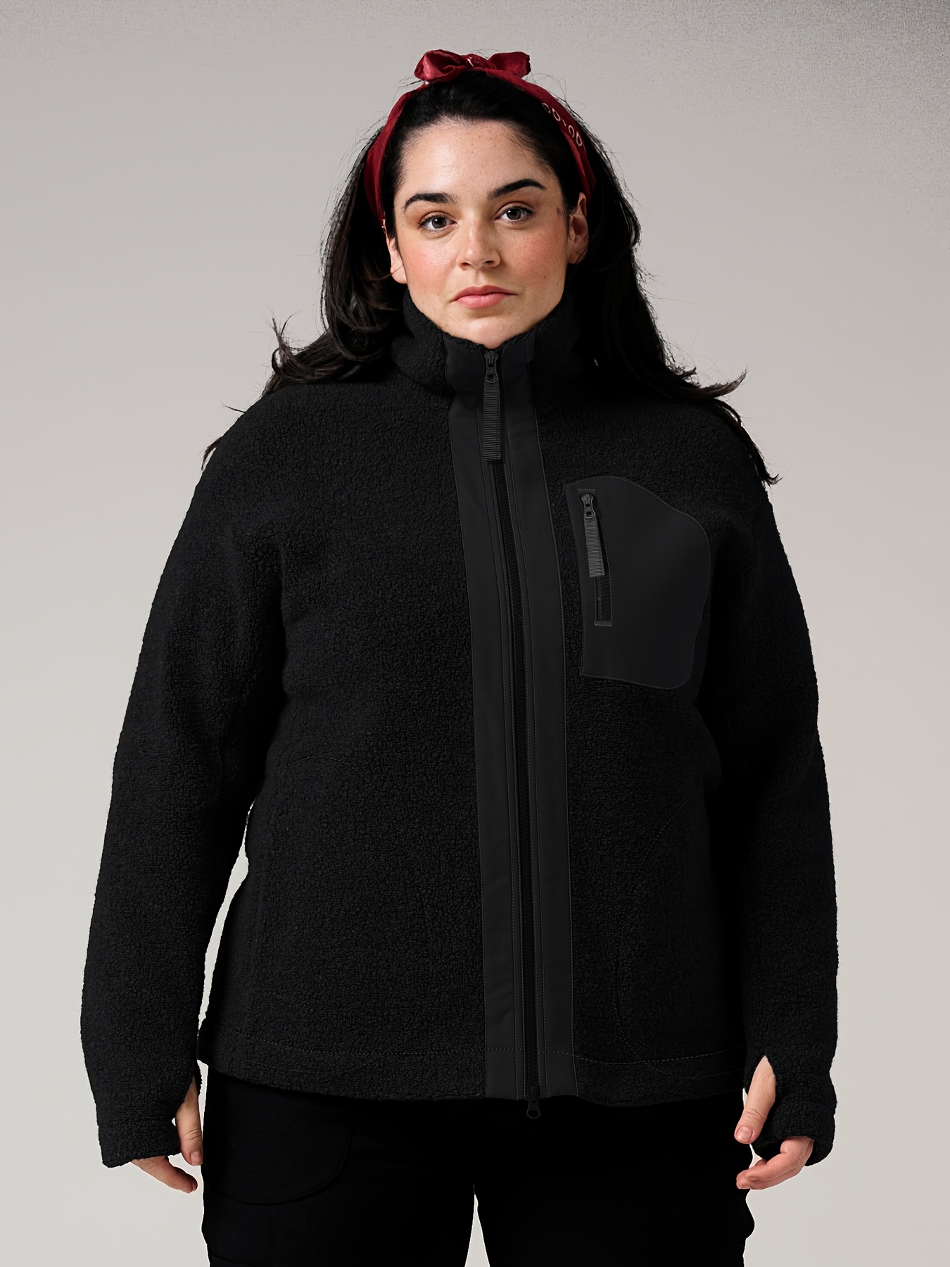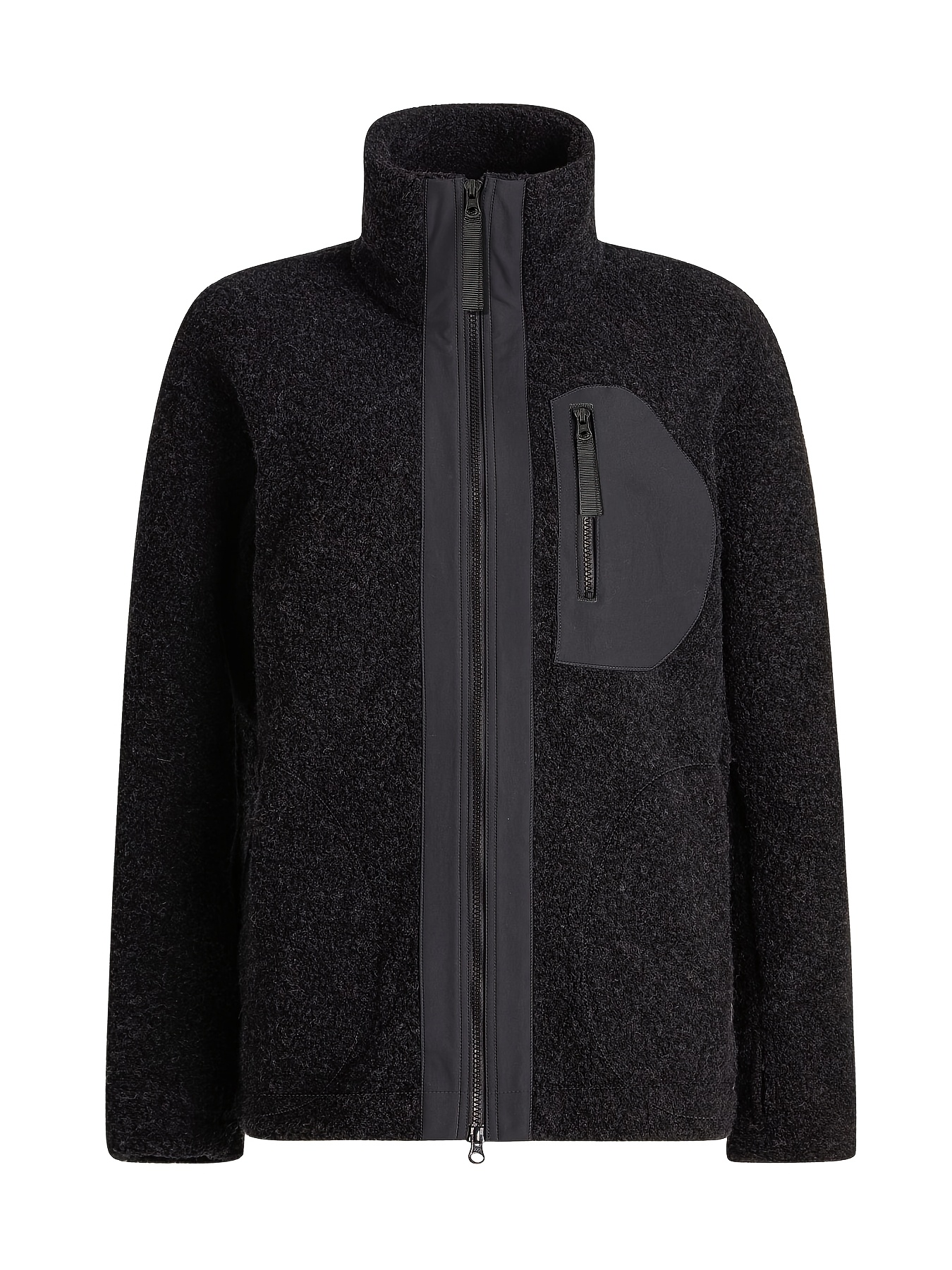 Winter Black High Collar Jacket - Outdoor Casual, Front Zipper, Hidden Zipper Insert Bag