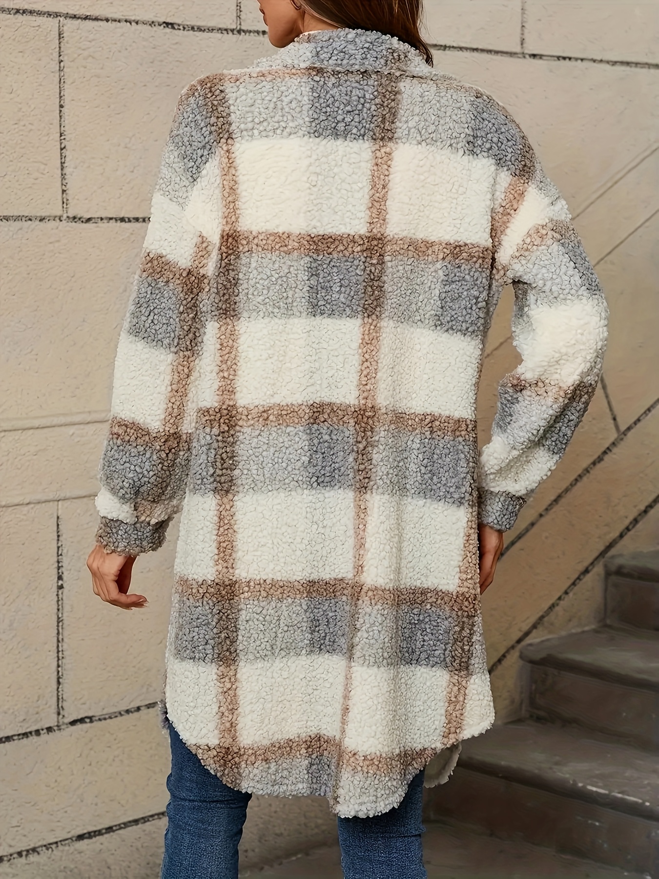 Women's Casual Plaid Faux Fur Coat with Button Front & Lapel Collar - Machine Washable All-Season Outerwear Beige/White/Brown/Gray/Black, Casual Attire, Stylish Jacket, Cozy Fabric, Buttonup Jacket, Fashion Lovers