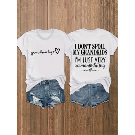 Summer Women's Letter Print Front and Back Fashion Short Sleeve T-Shirt, Comfortable Breathable Fabric, Casual Sporty Style, Suitable for Spring and Summer
