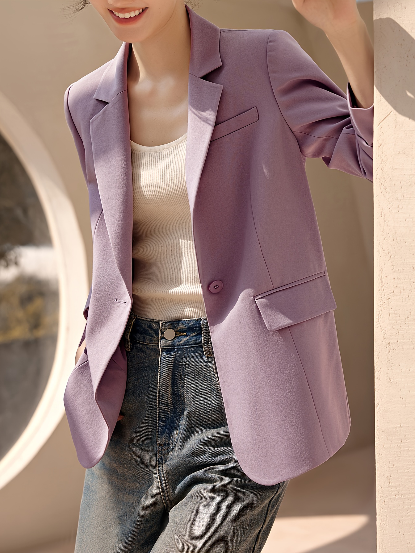 XWI Elegant Solid Color Blazer for Women - Classic Long Sleeve, Open Front with Single Button, Machine Washable - Perfect for Spring & Fall