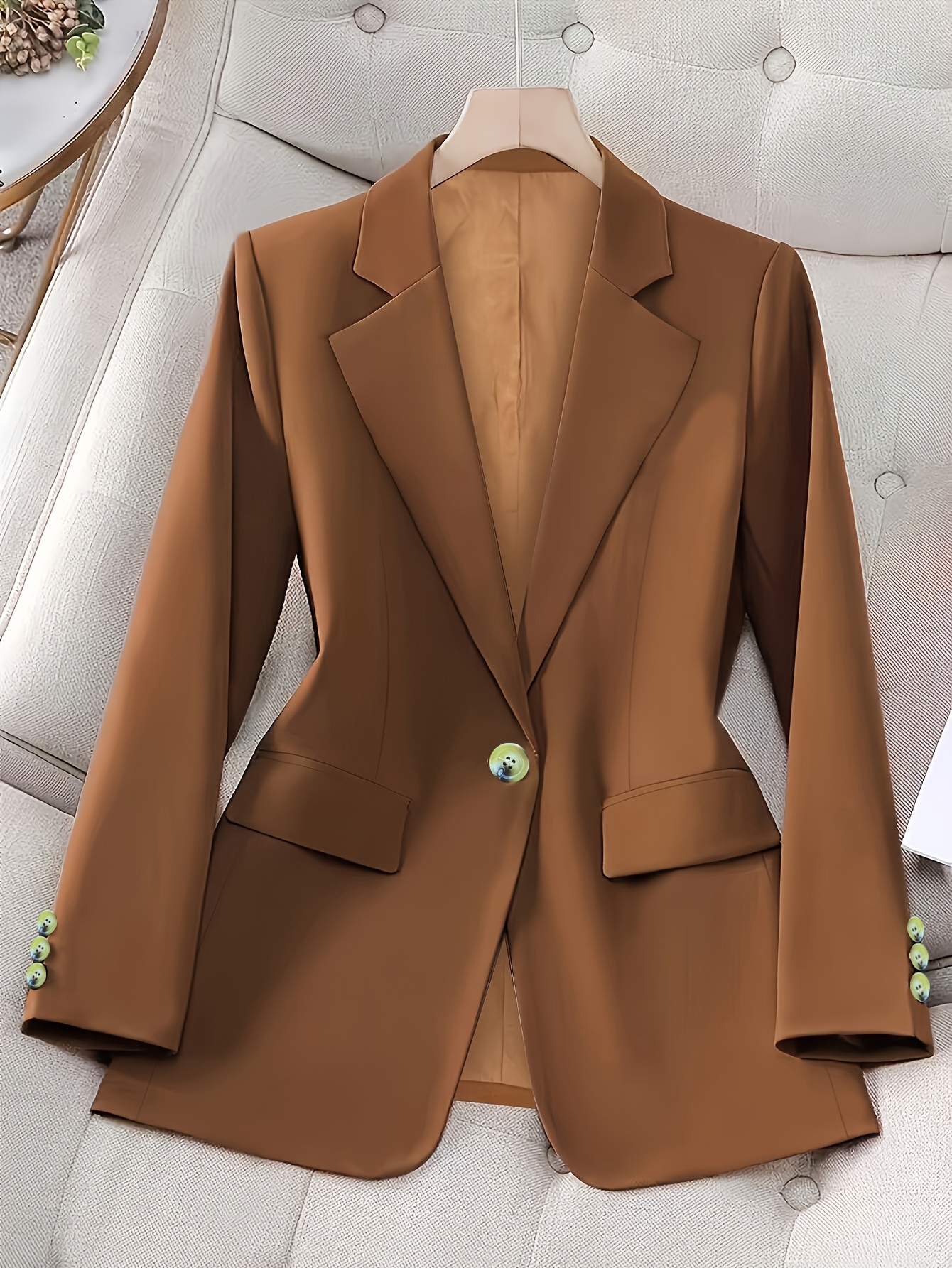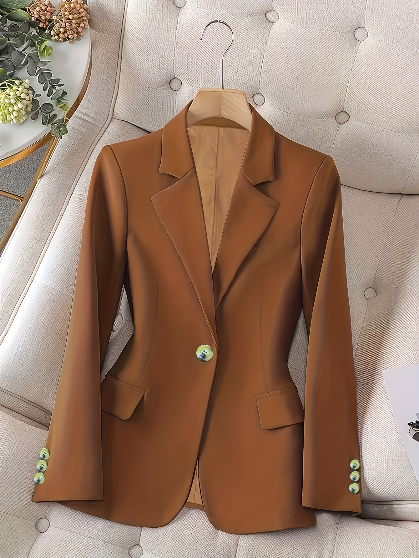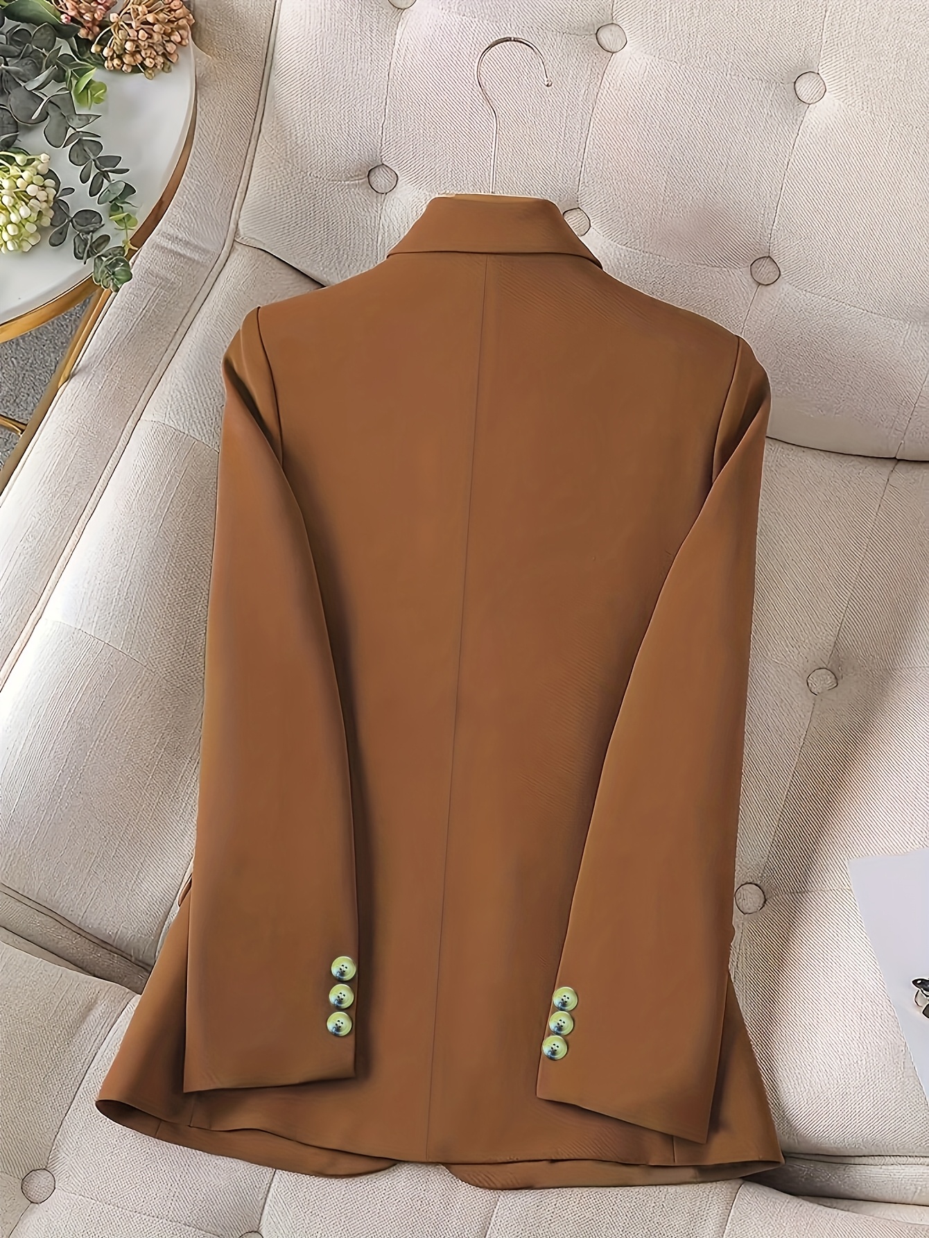 [Lightweight Polyester Blazer] Polyester Women's Lightweight Long Sleeve Blazer | Elegant Solid Color Office Jacket with Decorative Buttons, Notched Lapel, and Chest Pockets, Perfect for Casual or Professional Wear