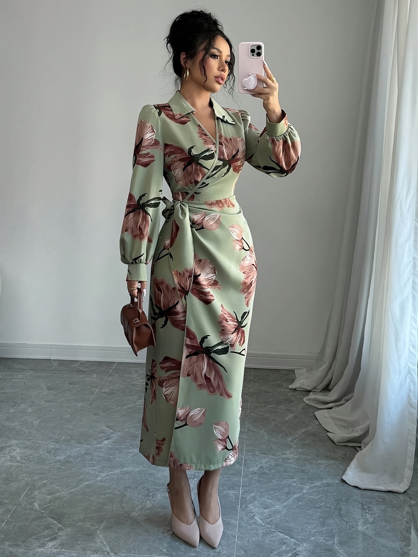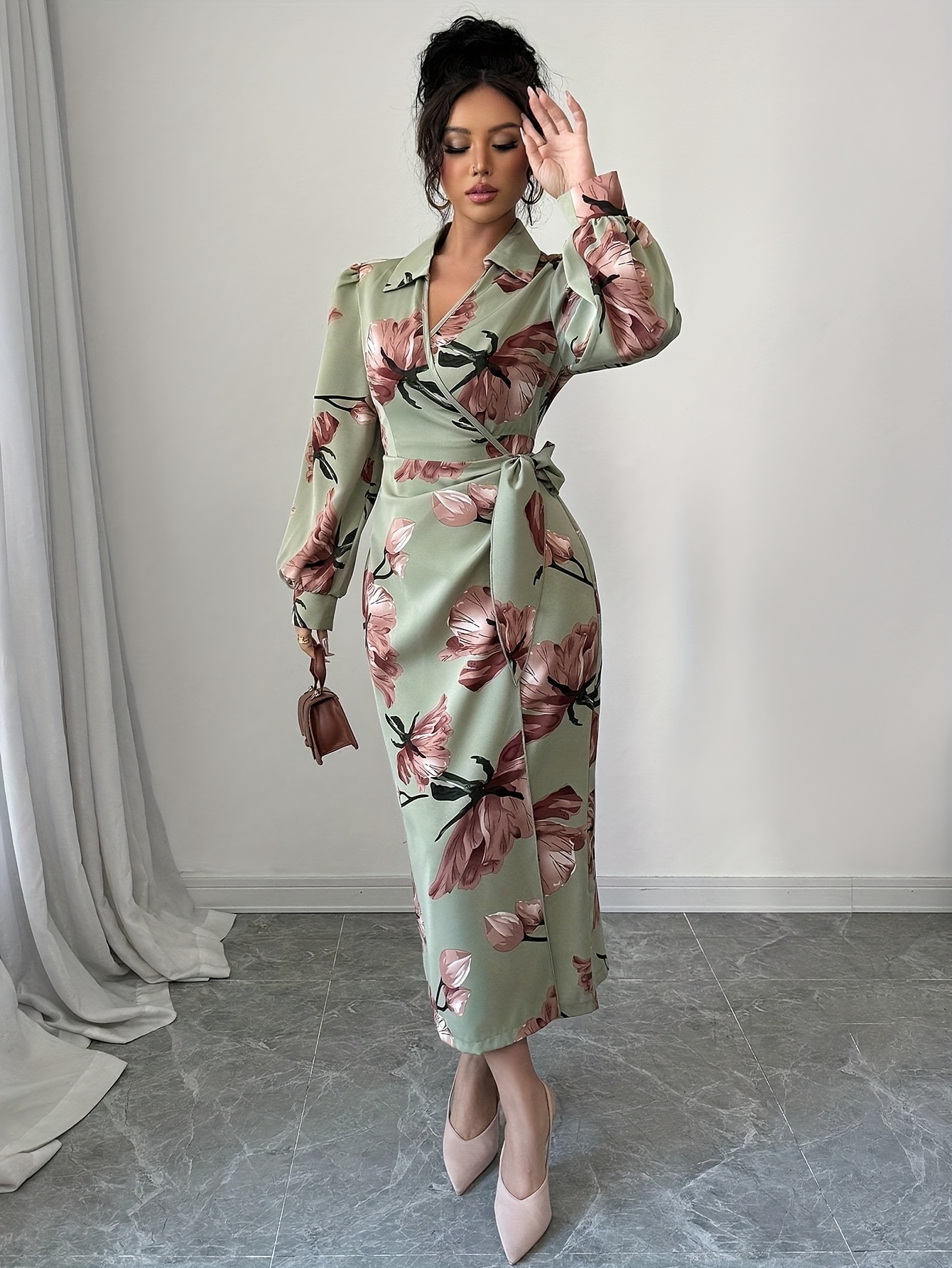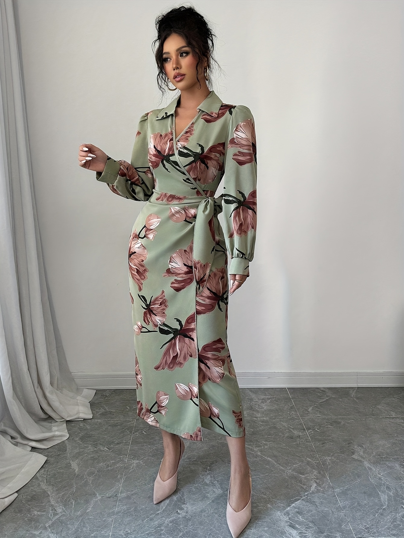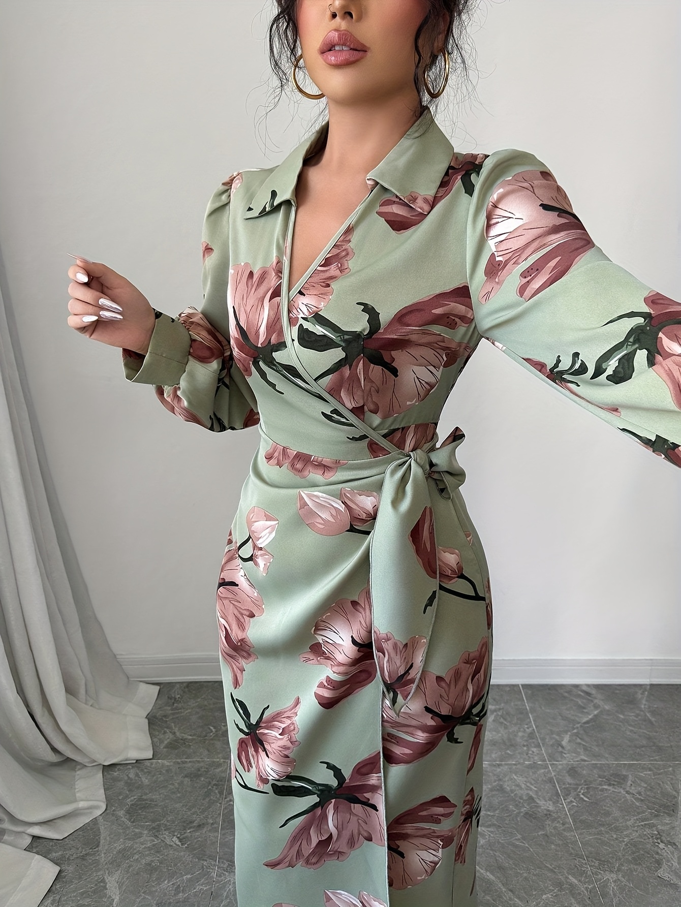 Plus Size, Women's Floral Print maxi Dress - Elegant V-Neck Long Formal & Casual Dresses, Non-Stretchy Fabric, Machine Washable for Wedding, Party, Everyday Outfits - Plus Size Friendly, Cute Dresses