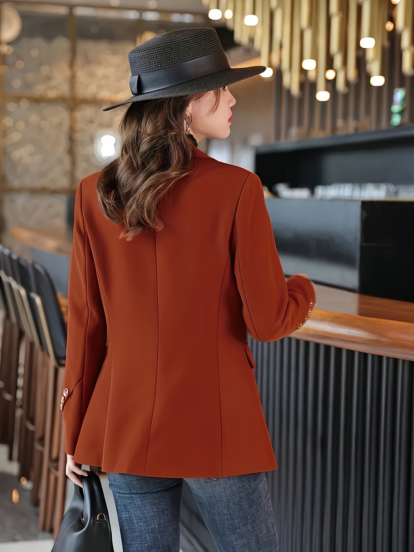 Elegant Red Blazer with Golden Buttons - Stylish Long Sleeve Women'S Suit Jacket, Suitable for Work and Leisure, Autumn and Winter, Casual Workwear | Chic Blazer with Fashionable Button Details, Ladies' Blazer QL25